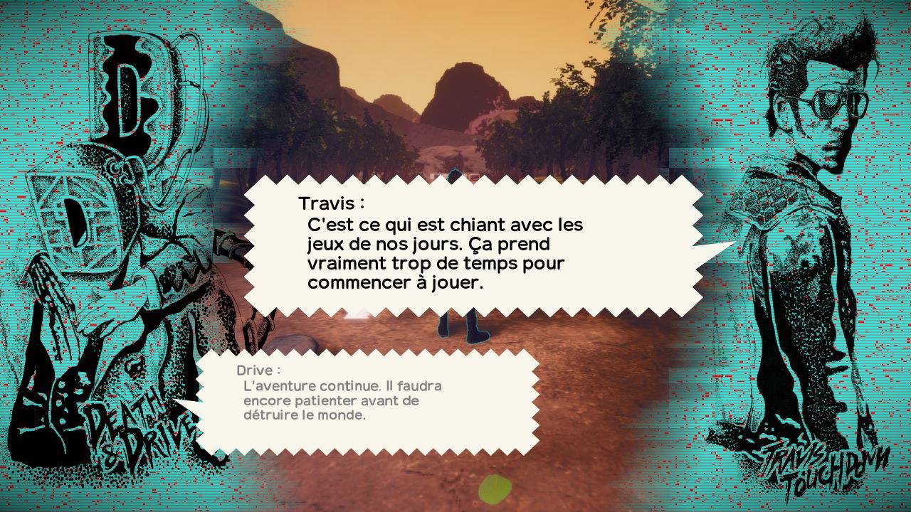 Dès lors, Travis et Bad Man mettent leur désaccord au second plan, et font équipe pour combattre dans différents mondes de jeu pour…… Je vous laisse découvrir la suite ahah.
