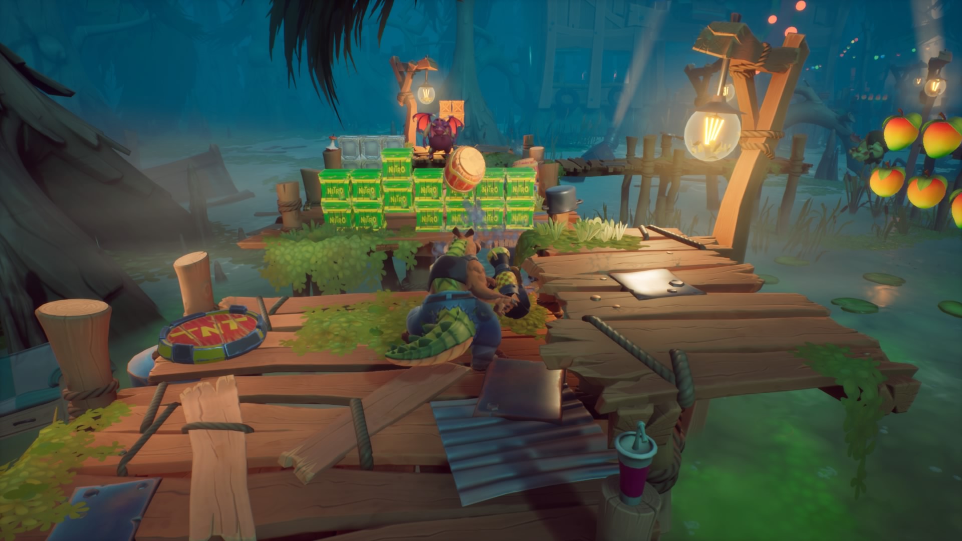 Mais ce n’est pas tout car la grande nouveauté est l’apparition de niveaux « parallèles » qui présente un niveau déjà parcouru par Crash et Coco du point de vue d’un autre personnage avec son propre panel de mouvements. On peut, par exemple, jouer Tawna, l’anciene copine de Crash, mais venant d’une autre dimension. Elle possède un gameplay similaire à nos marsupiaux mais en plus nerveux grâce à son grappin et sa capacité à rebondir sur certains murs. On retrouve aussi Dingodile, ancien boss de Crash Bandicoot 3, qui s’est perdu dans le continuum espace-temps après avoir été aspiré dans une faille. Ses niveaux sont plus lents à cause de sa mécanique principale puisqu’il utilise son canon à air pour aspirer et expulser des objets, un peu comme Luigi et son Ectoblast. Enfin, le Dr. Neo Cortex est également jouable et propose des phases plus centrées sur la réflexion. Avec son pisto-laser, il peut transformer des ennemis en plateformes solides ou rebondissantes et possède une charge qui permet de traverser des fossés. Ces phases de gameplay sont toutes funs à jouer et ne sont pas lassantes puisque courtes. En effet, la particularité de ces niveaux est qu’ils sont coupés en deux parties. La première avec un nouveau personnage pour raconter des événements parallèles à ceux de Crash et Coco durant ce niveau puis une seconde qui repasse la main à nos principaux protagonistes dans une version plus corsée du niveau d’origine.
