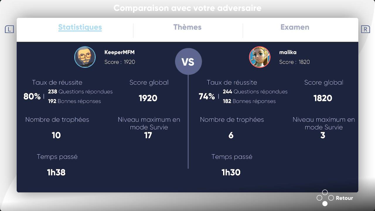 Code la Route propose aussi un petit mode en ligne, avec partage de résultats, et petits défis à réaliser. Un petit plus sympa, histoire de voir lequel de vos amis est incollable sur le sujet.
