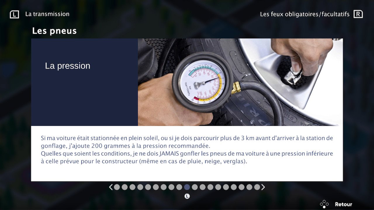 Outre ces parties d’entraînements (3200 questions sur 130 niveaux), le titre propose aussi des cours complets sur tout ce qui touche à la voiture, à la façon de conduire, aux panneaux… Il y a de la lecture pour qui veut voir (ou revoir) le code de la route. Je ne sais pas s’il est aussi complet que le fameux Code Rousseau, mais je l’ai trouvé très exhaustif.