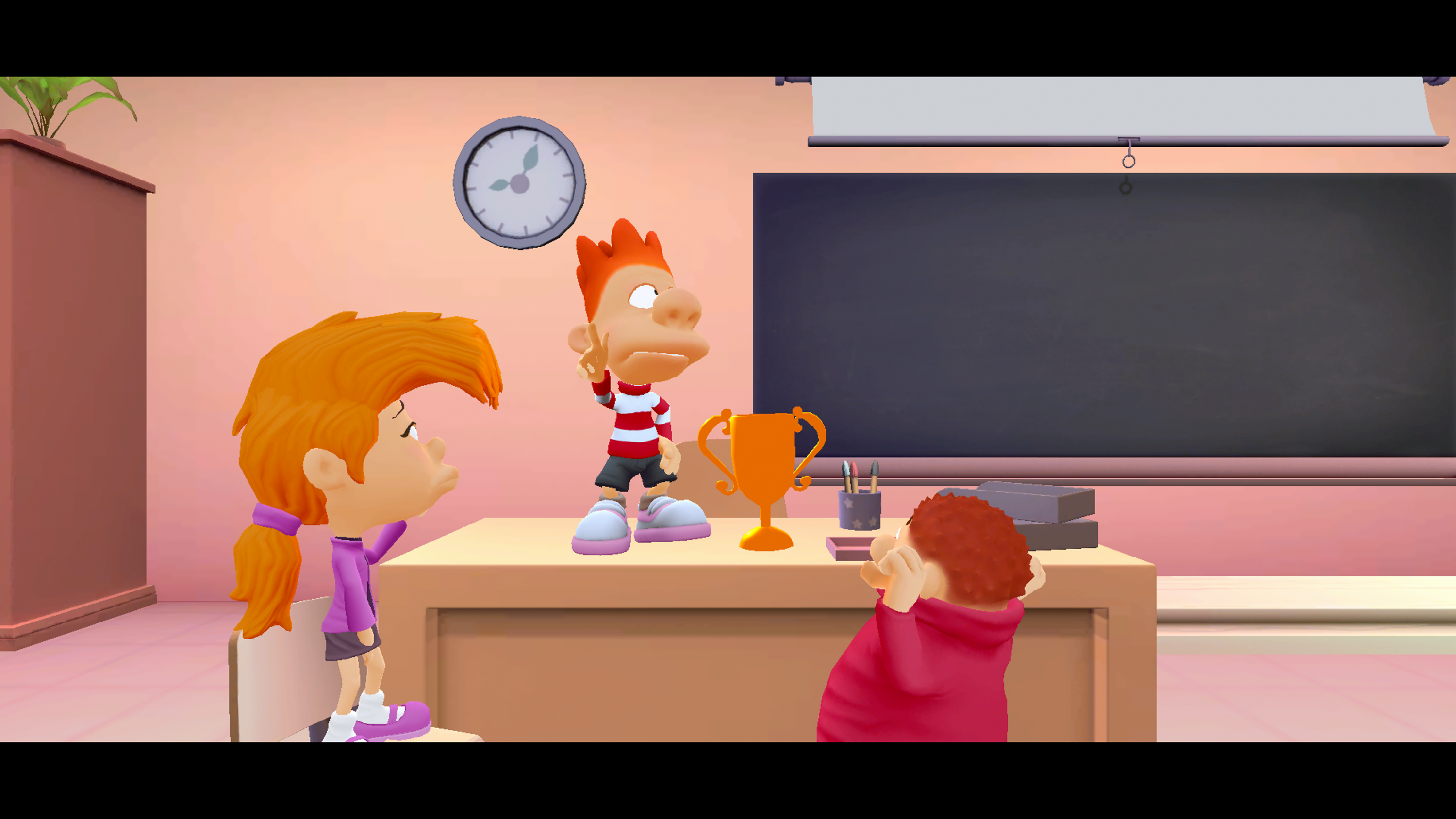 Mais alors si tout l’univers est de qualité et respectueuse de Titeuf, d’où vient le problème ? Clairement ce remaster est un travail bâclé. D’abord graphiquement, on n’a pas le sentiment d’être sur Xbox One, mais plutôt sur Wii, ce qui fait mal en cette époque. Et vous avez vu le non respect de Titeuf, qui ressemble aux extraterrestres Lustucru ? Terrifiant. Quelques bugs sont présents aussi, autant d’affichages (le skin de Nadia est carrément absent des cinématiques dans la classe de neige et de MegaFun Land) que dans le gameplay rendant les parties vraiment compliquées. On a même eu le droit lors des sessions du mode histoire à des manettes qui changeaient de propriétaire de façon totalement aléatoire, heureusement pas durant les mini jeux. Pas compris (rire nerveux).