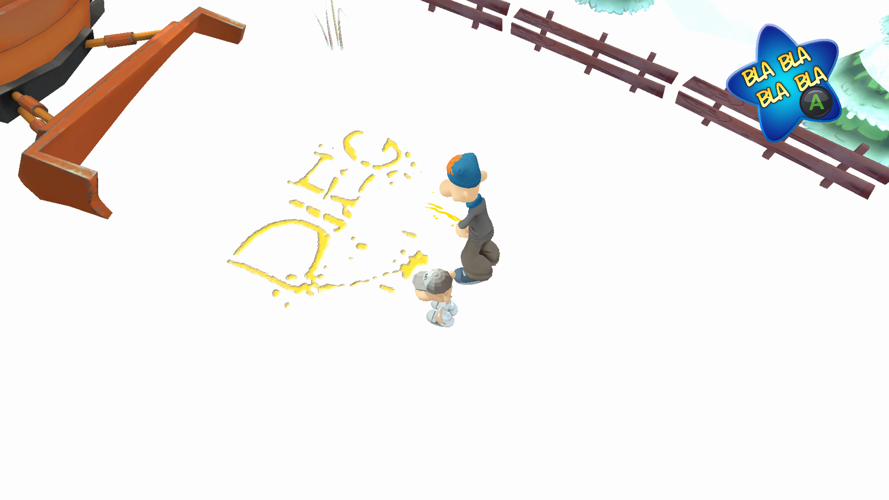 Pour occuper vos enfants (ou vous même) le scénario du mode histoire vous emmène dans l’école, une station de ski et dans votre quartier dans le MegaFun Land. Dans chacun de ces endroits vous aurez à réussir quelques missions un peu bébête et clairement pipi caca pour récolter des succès. Trouver du papier, de la merde de chien et l’allumer devant une porte, cracher sur des passants, sonner aux portes, activer l’alarme de voitures, voilà le programme. Les PNJ rencontrés vous feront un commentaire sans aucun intérêt et ils faudra trouver vos potes d’écoles pour déclencher un mini jeu. Evidemment pour passer à la suite il faudra réaliser un meilleur score. Ici encore le terme pipi caca convient parfaitement et on irai même jusqu’à dire que c’est parfois un peu crados. Heureusement bien souvent on reste dans l’humour enfantin, n’est ce pas Vomito !?
