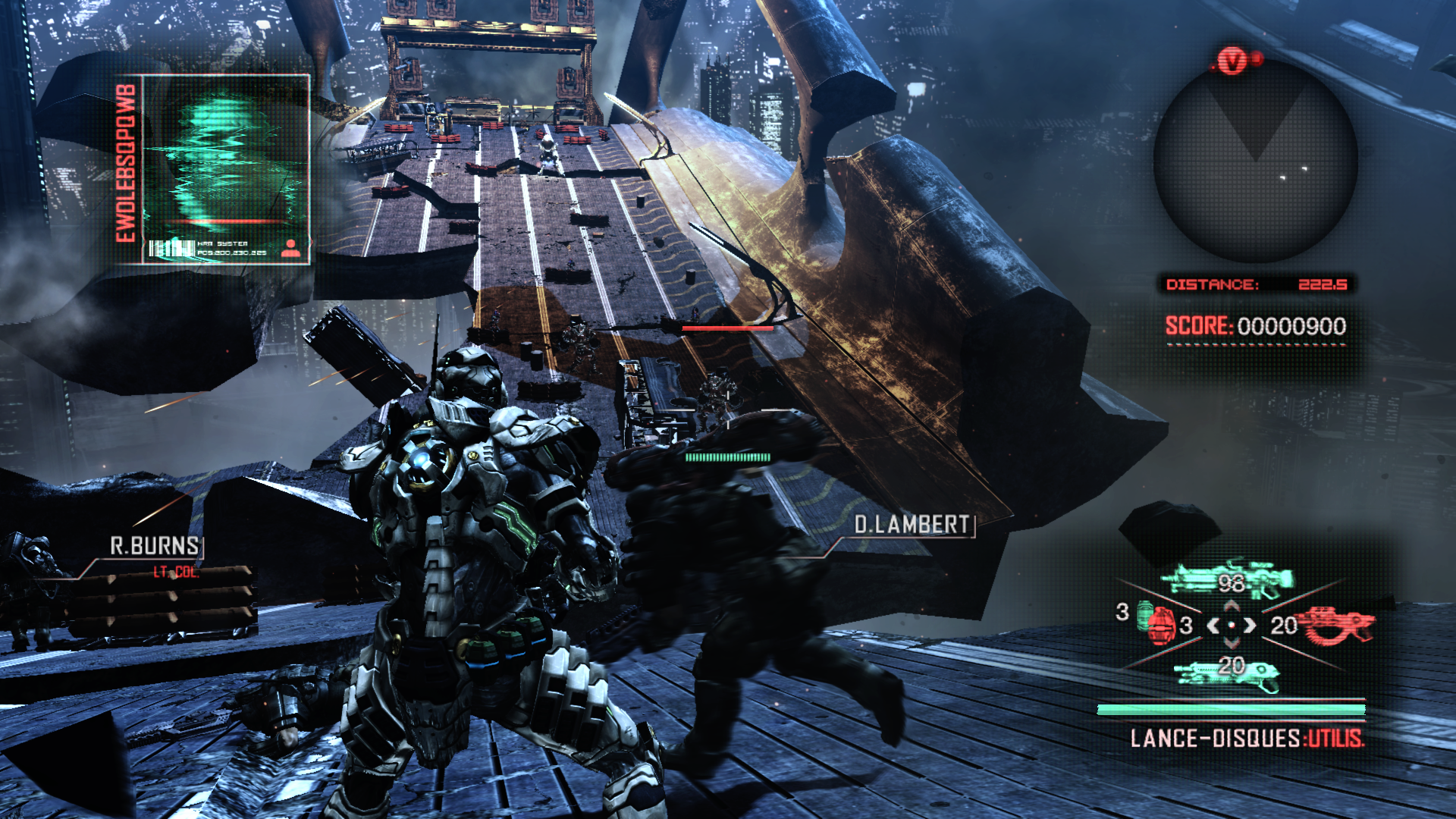 C’est alors que la présidente envoie l’armée pour reprendre le contrôle de cette station, assisté d’un agent de la D.A.R.P.A. du nom de Sam GEDEON, héros du jeu et revêtu d’une armure technologiquement dernier cri nommé A.R.S..