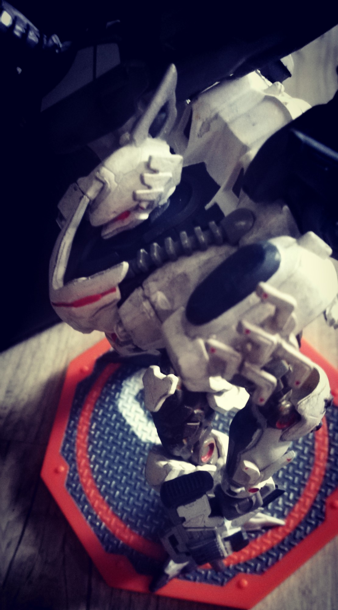 La figurine est elle aussi plutôt jolie. La qualité des détails est moins bonne que je ne l’imaginais. Peut-être est-ce pour faire un peu Mecha abîmé après combat je ne sais pas, mais ce n’est pas parfait.
