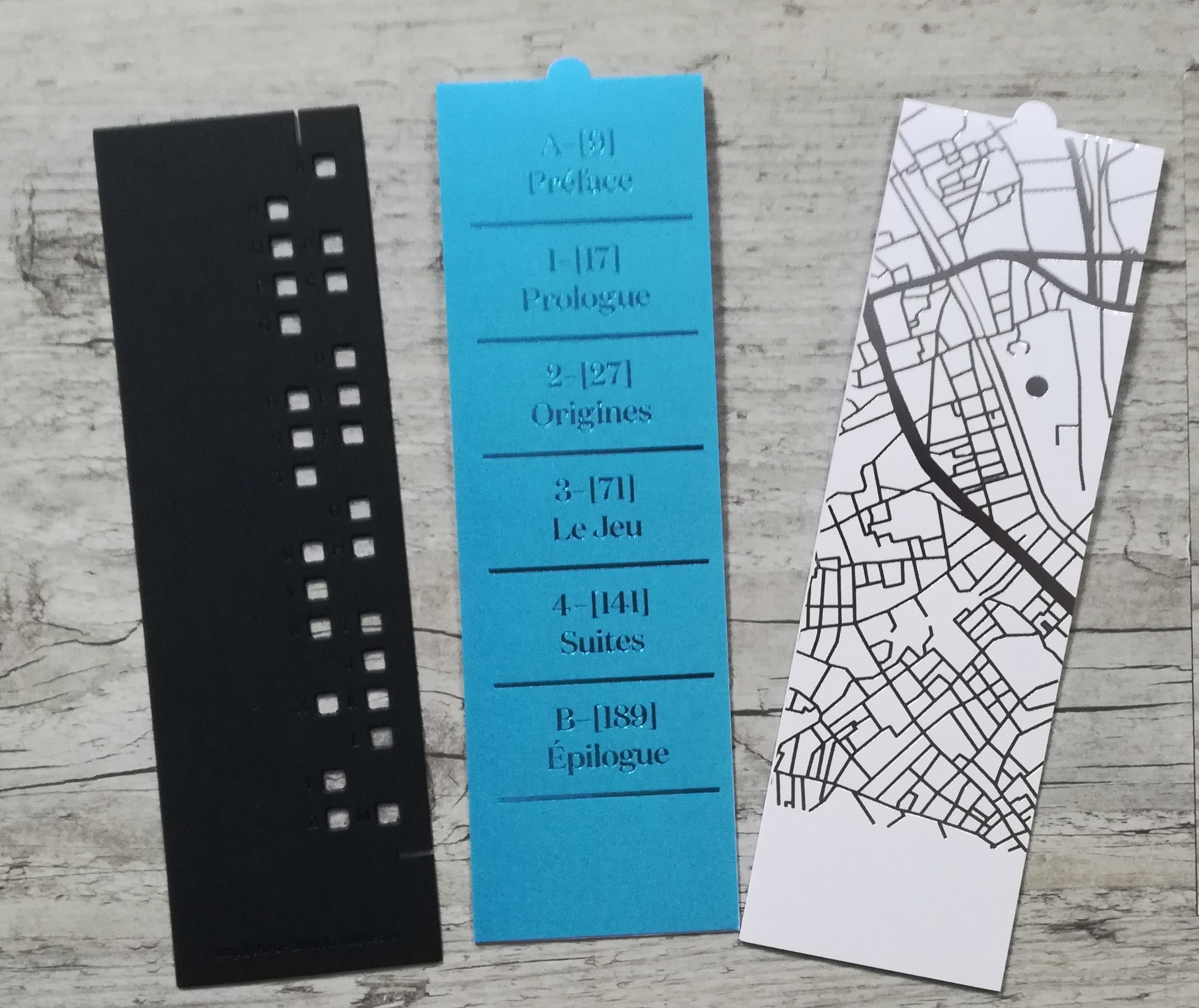- deux marques-pages exclusifs, le premier avec un marquage à chaud bleu turquoise et un second avec une dorure argent