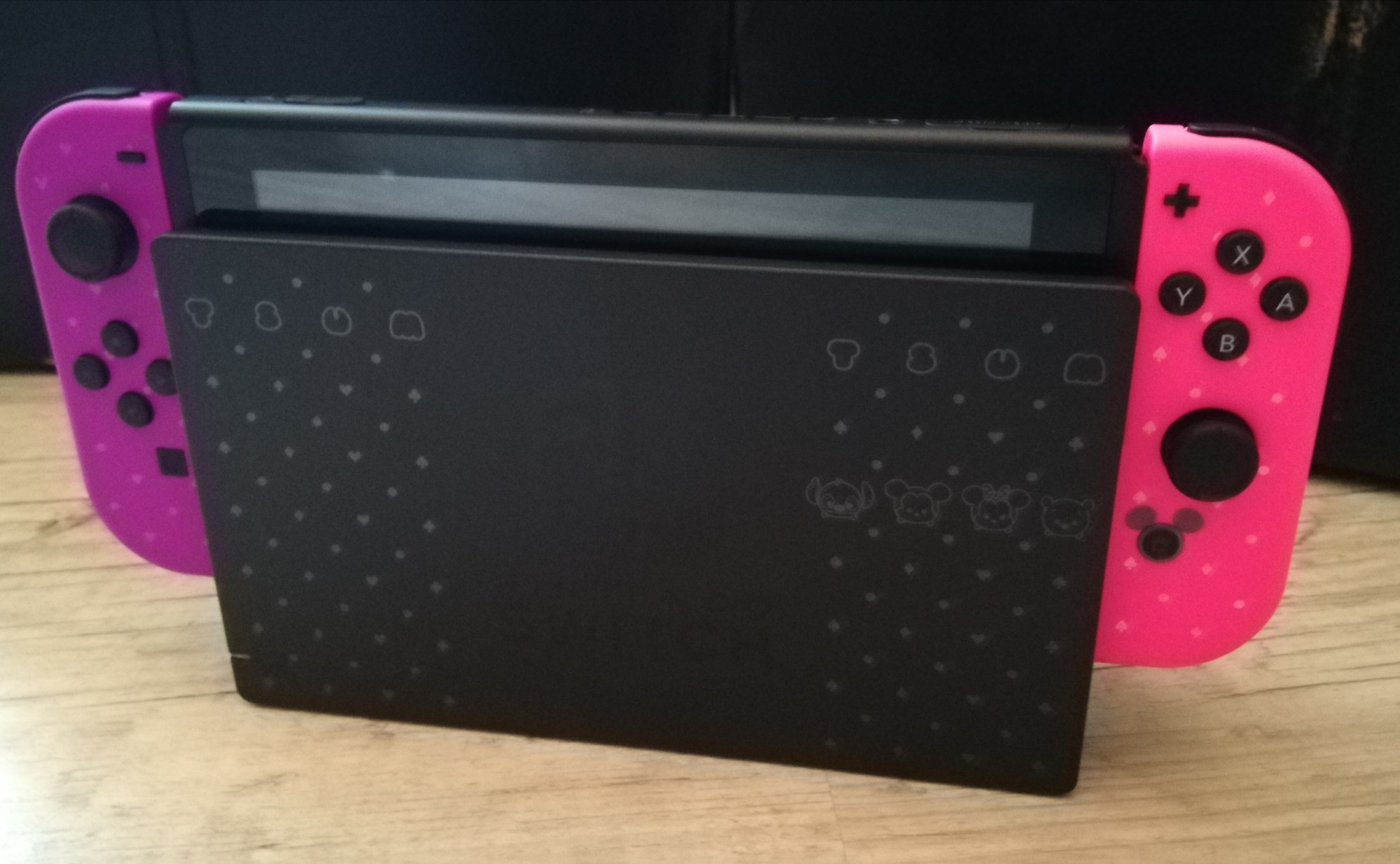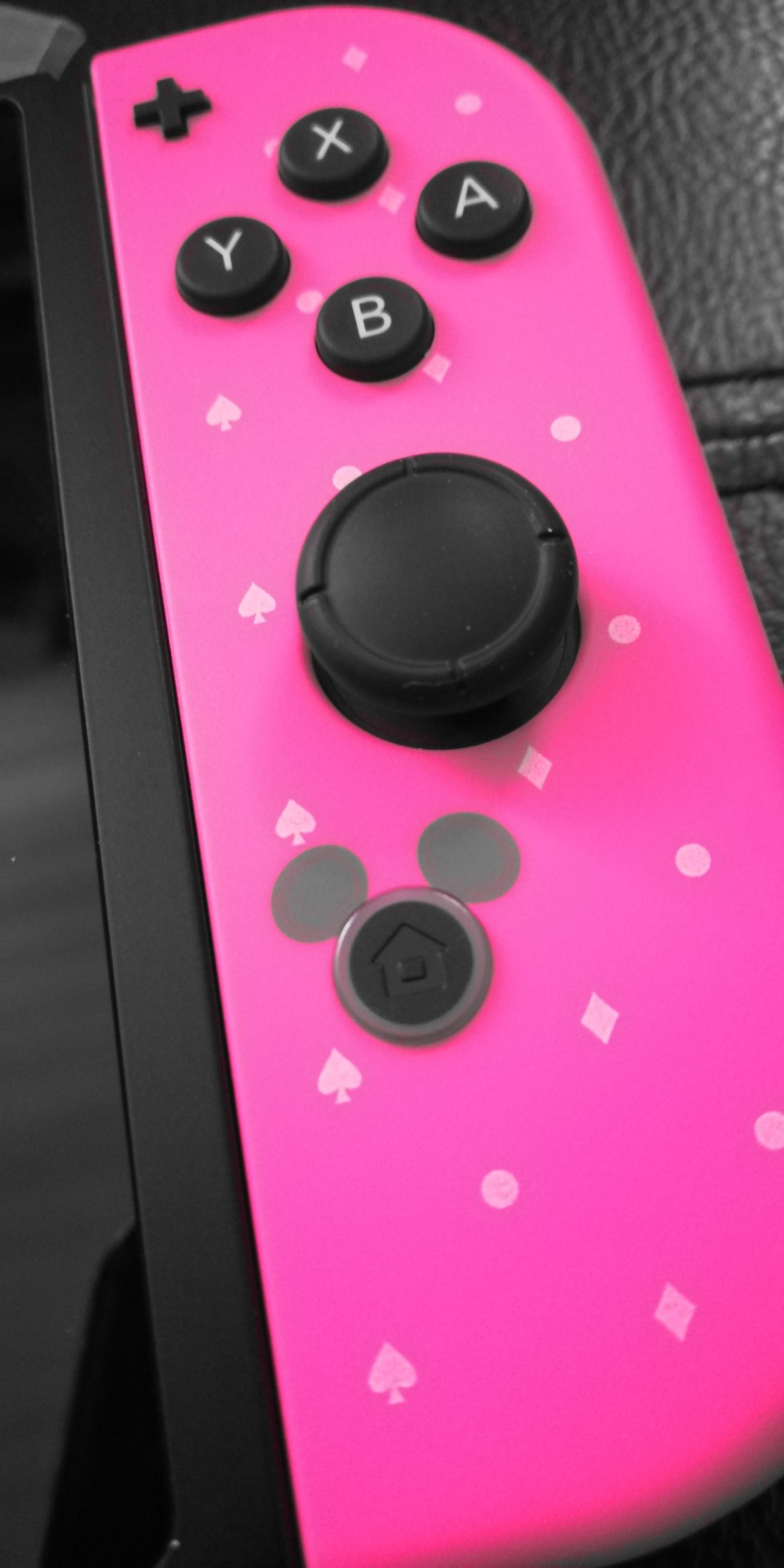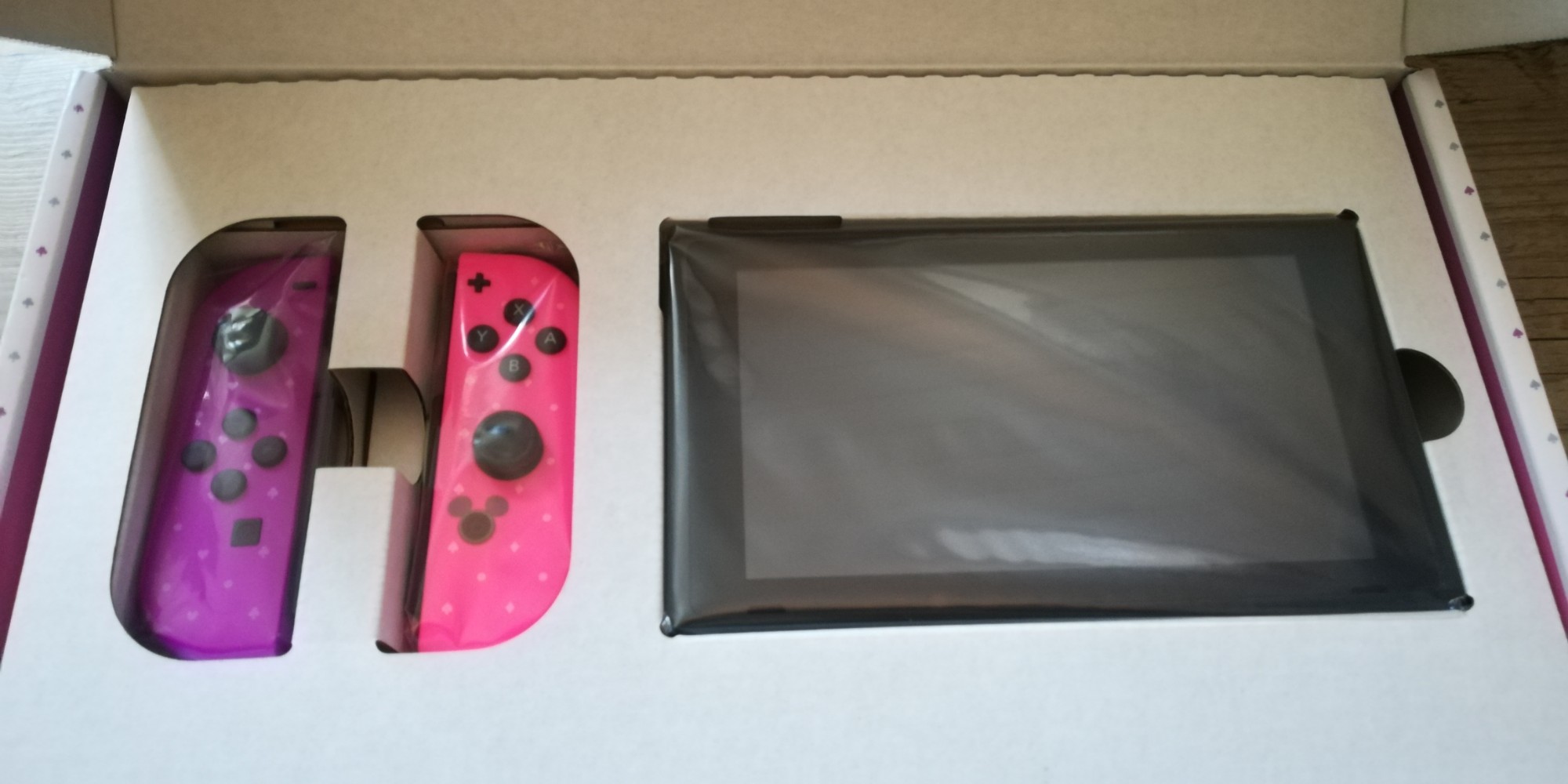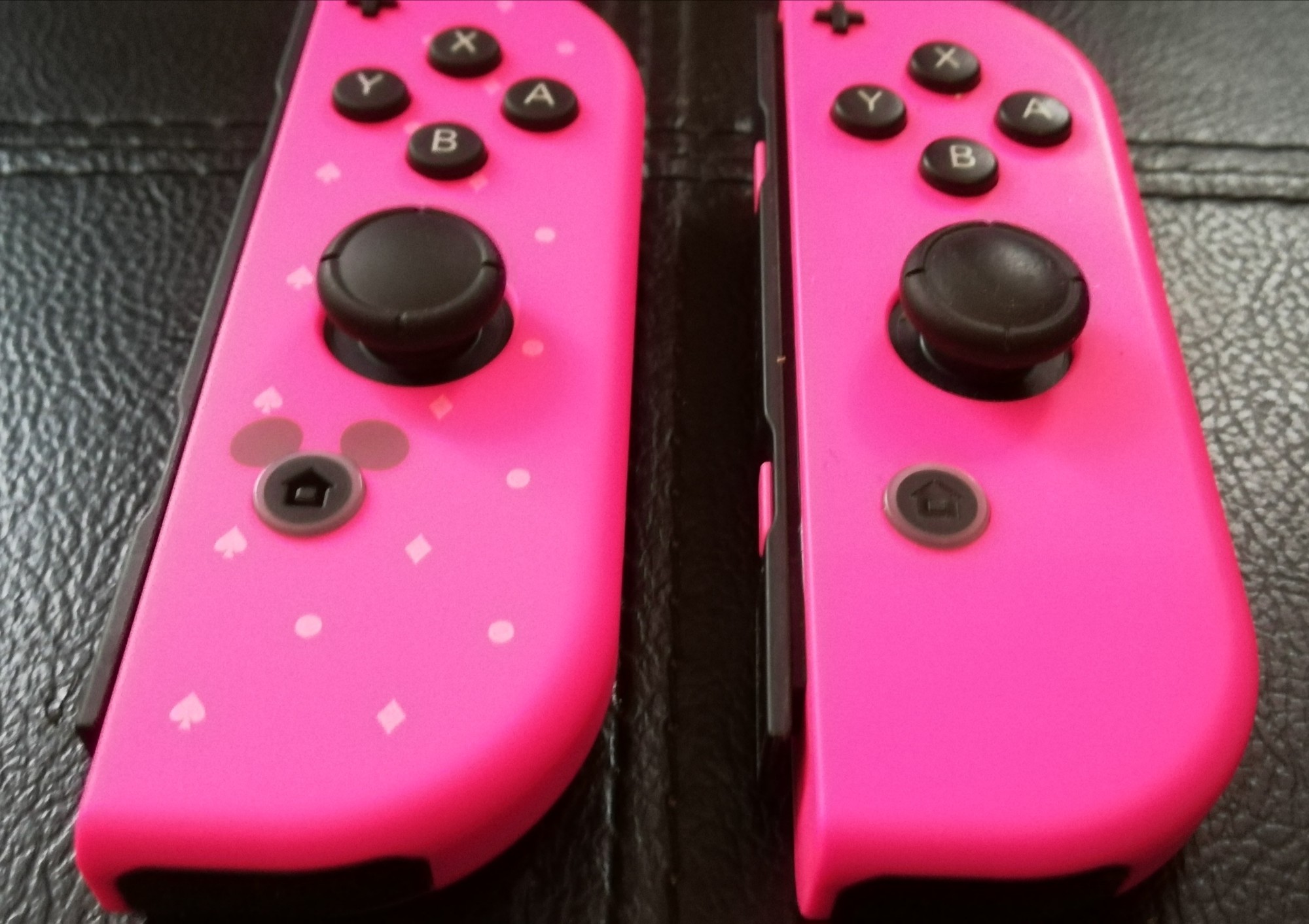 En plus du jeu, et comme les éditions limitées précédentes, l’hybride de Nintendo possède des joycons exclusifs. Celui de gauche est violet avec quelques petits pictogrammes (cœurs, trèfles…). Le droit est rose et est très proche du joycon de Splatoon 2, avec un petit clin d’œil à Mickey sur le bouton Home.