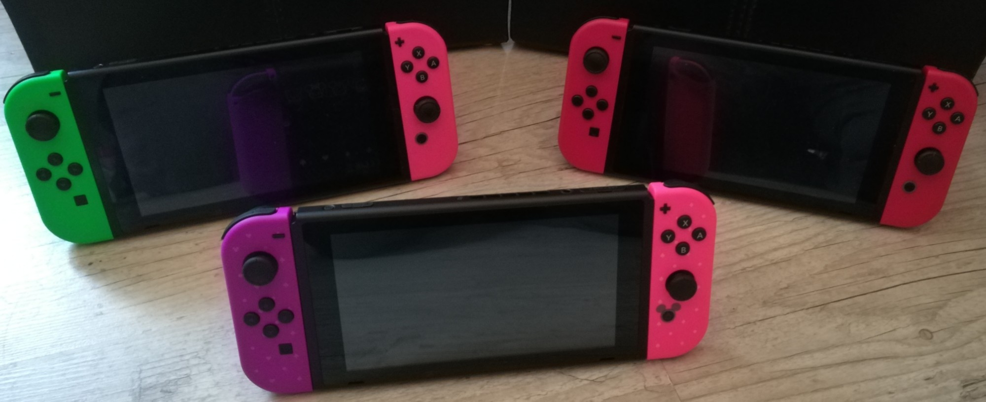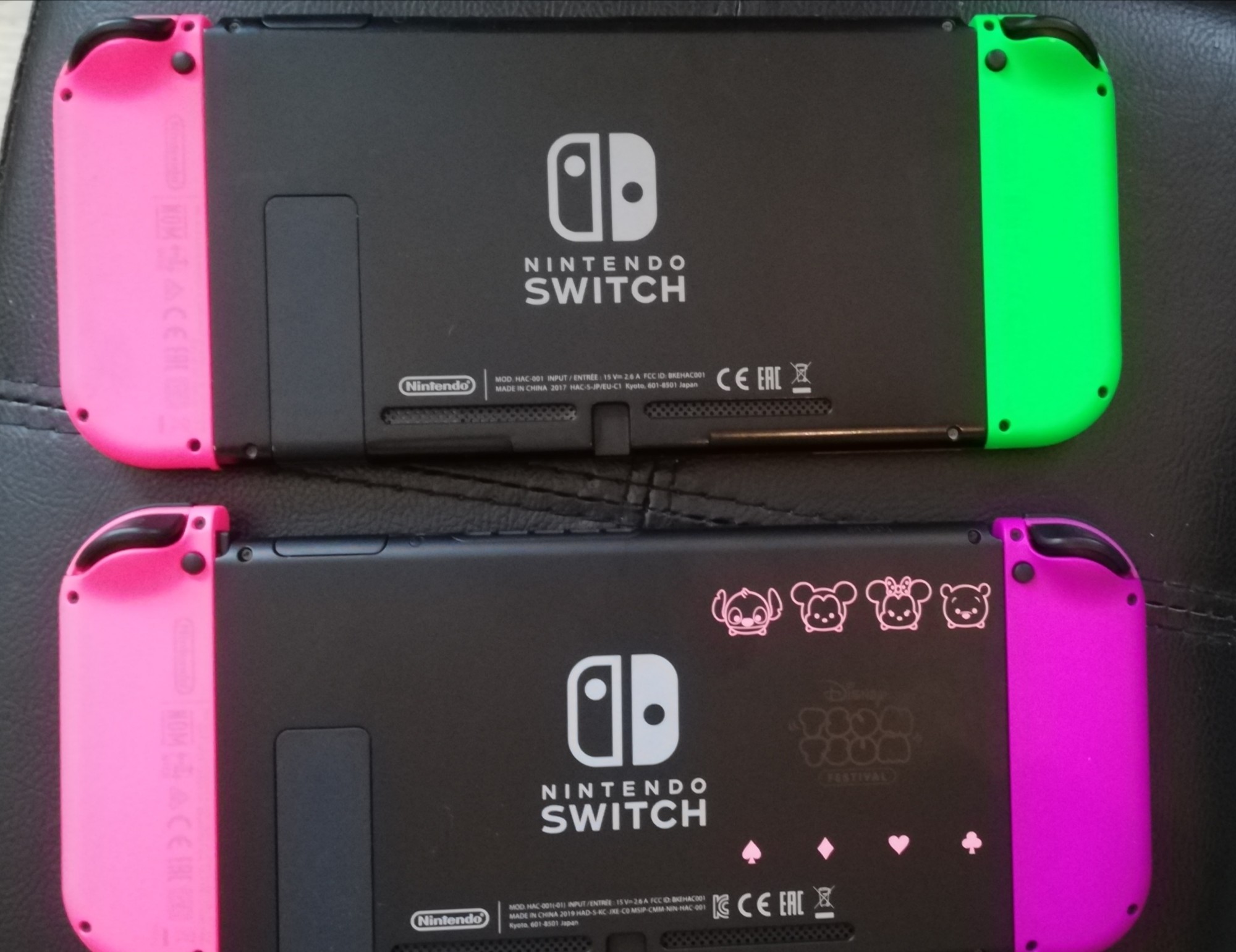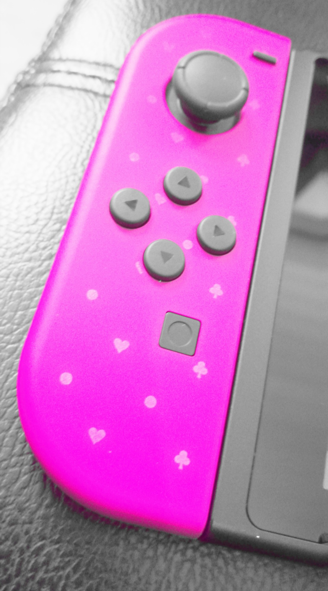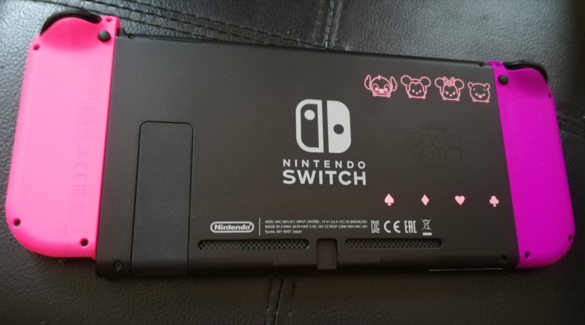 En plus du jeu, et comme les éditions limitées précédentes, l’hybride de Nintendo possède des joycons exclusifs. Celui de gauche est violet avec quelques petits pictogrammes (cœurs, trèfles…). Le droit est rose et est très proche du joycon de Splatoon 2, avec un petit clin d’œil à Mickey sur le bouton Home.